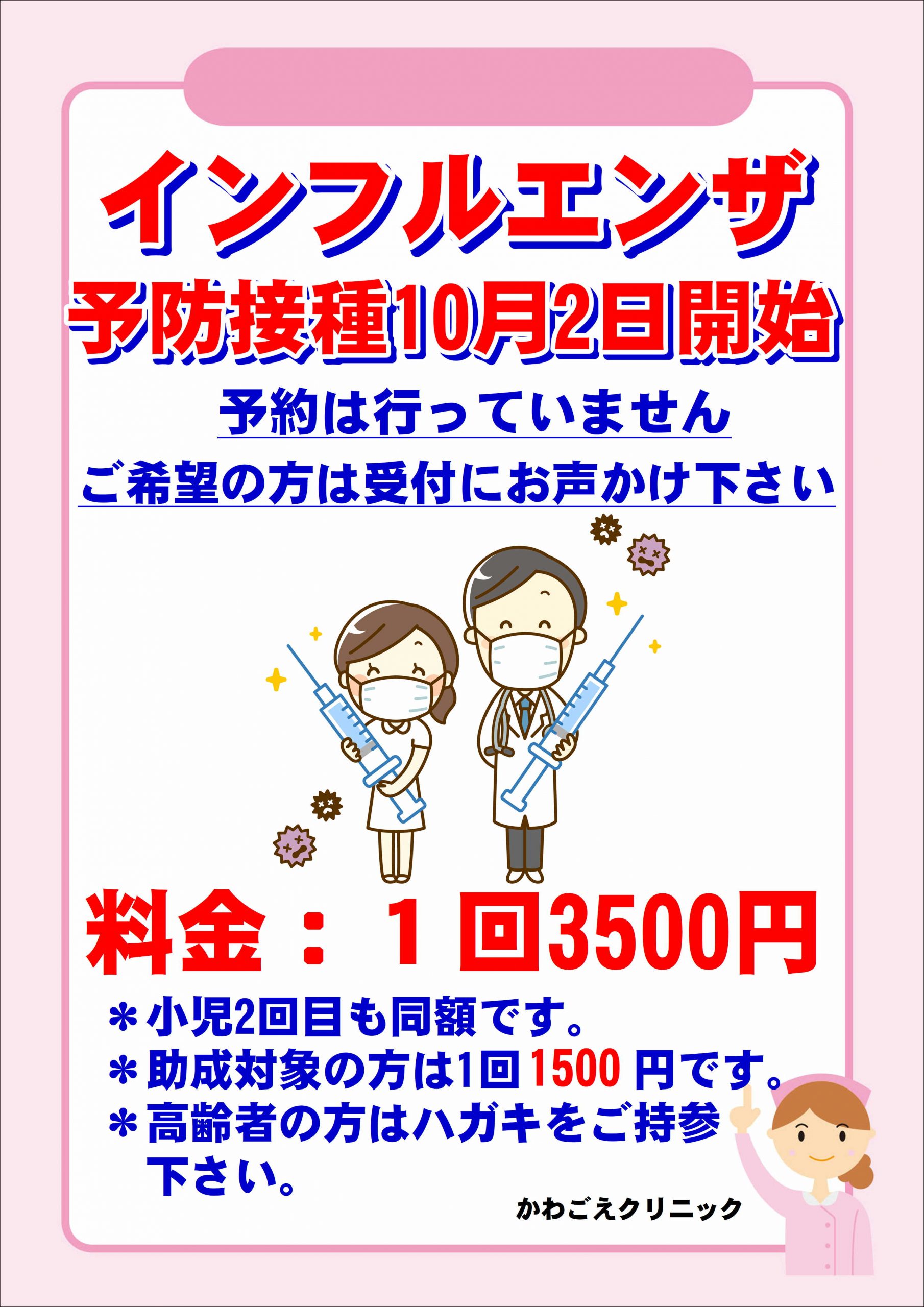 2025年10月2日より、インフルエンザの予防接種を開始します。